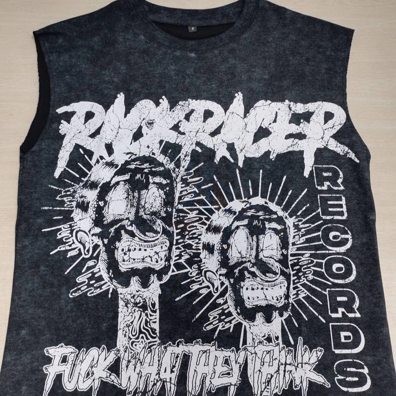 Terry Fabric Custom Hip Hop Oversized Cut Raw Hem Crop Cotton Tank Top
