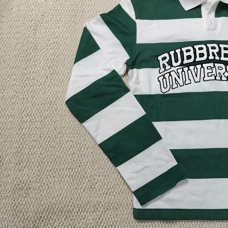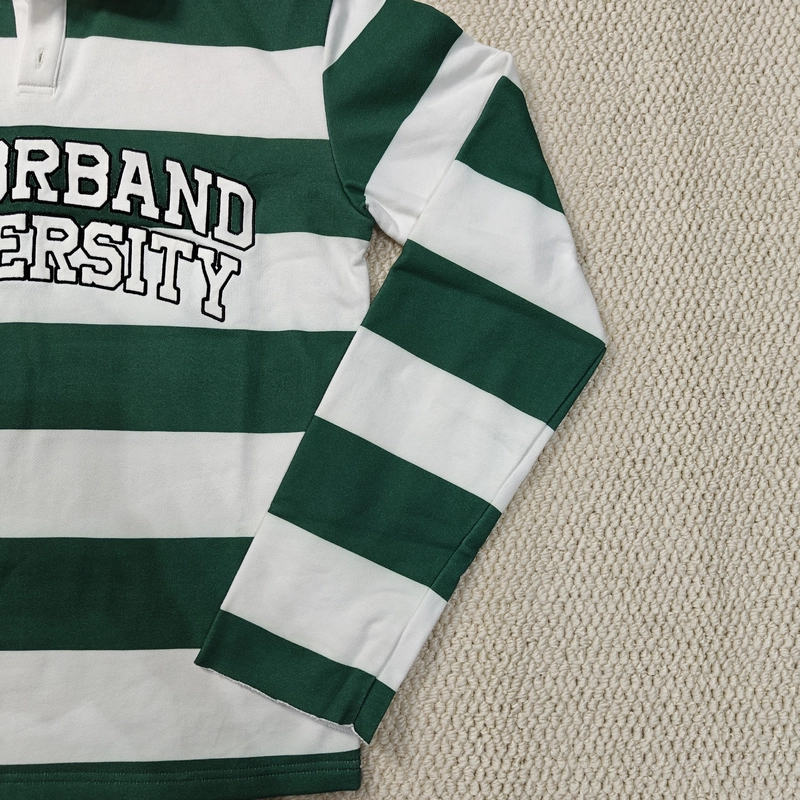 Button Up Collar Heavy Cotton Print Patch Embroidered Long Sleeve Rugby Polo T Shirt