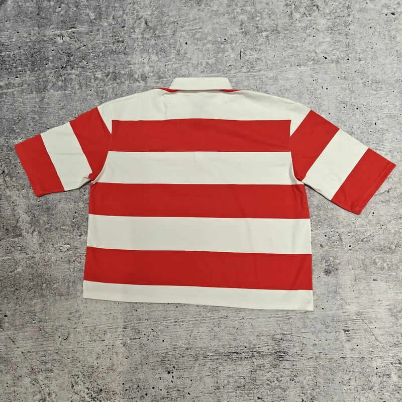 Rugby Retro Football Lapel Oversized Boxy Cropped Button Up Cotton Striped Polo Shirt