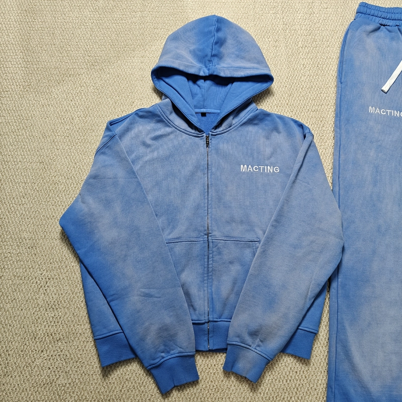 Custom Printed Reversible Stitch Pullover French Terry Heavyweight Distressed Acid Wash Sun Faded Washed Tracksuit