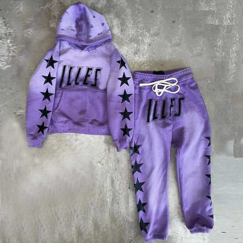 Custom Two-Piece Heavyweight Pullover Tracksuit with Printed Distressed Vintage Acid Wash