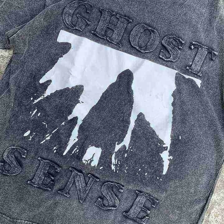 Distressed Patch Embroidery T Shirt With Custom Printing And Knitted Weaving Method