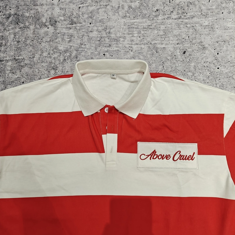 Rugby Retro Football Lapel Oversized Boxy Cropped Button Up Cotton Striped Polo Shirt
