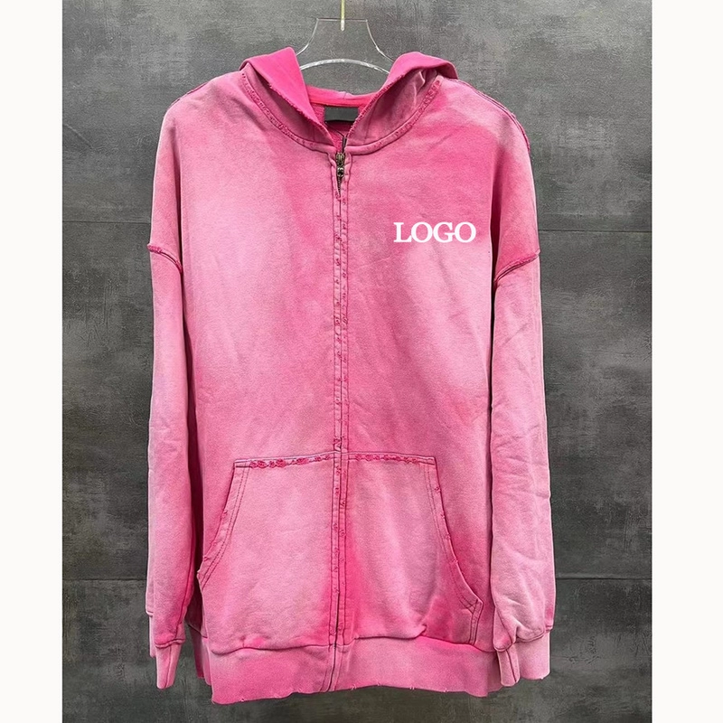 Vintage Distressed Ripped Tie Dye Zip Up Needle Detection And Custom Pattern Hoodie