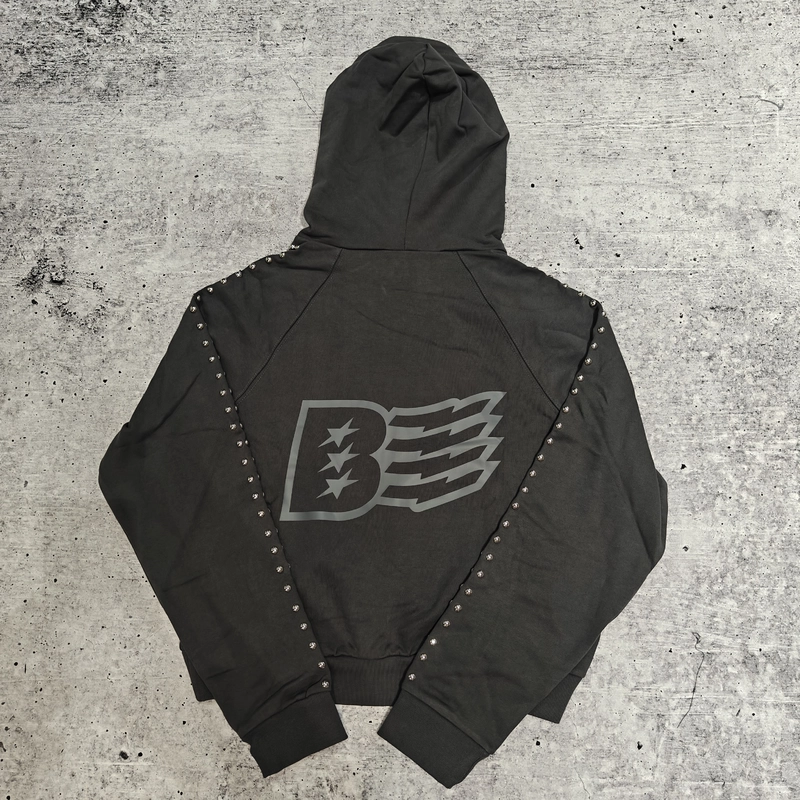 Custom Premium Cotton Heavy Weight Boxy Fit Zip Up Bling Crystal Rhinestone Hoodie